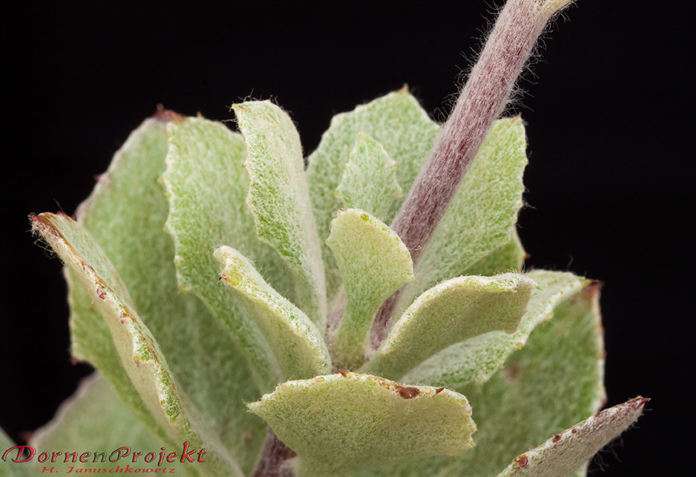 selbst die kleinen, hakigen Mitteldornen sind mit einem filzigen Belag
